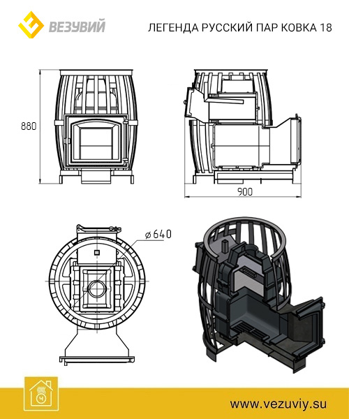 Договор заключается в момент оплаты Покупателем товара ТОЛЬКО в ОФЛАЙН-МАГАЗИНЕ. Делая предварительный заказ, Покупатель заверяет, что ознакомился и согласен с Политикой компании, она ему ясна и понятна.Печь для бани Везувий Легенда Русский пар Ковка 18 (271)