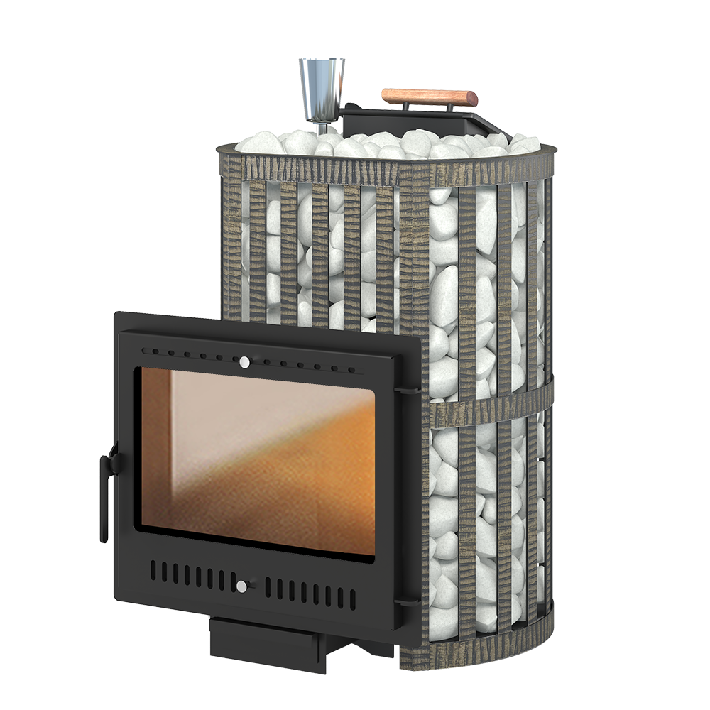 Закрытая каменка изготовлена из стали и вмещает в себя не менее 30 кг камней.