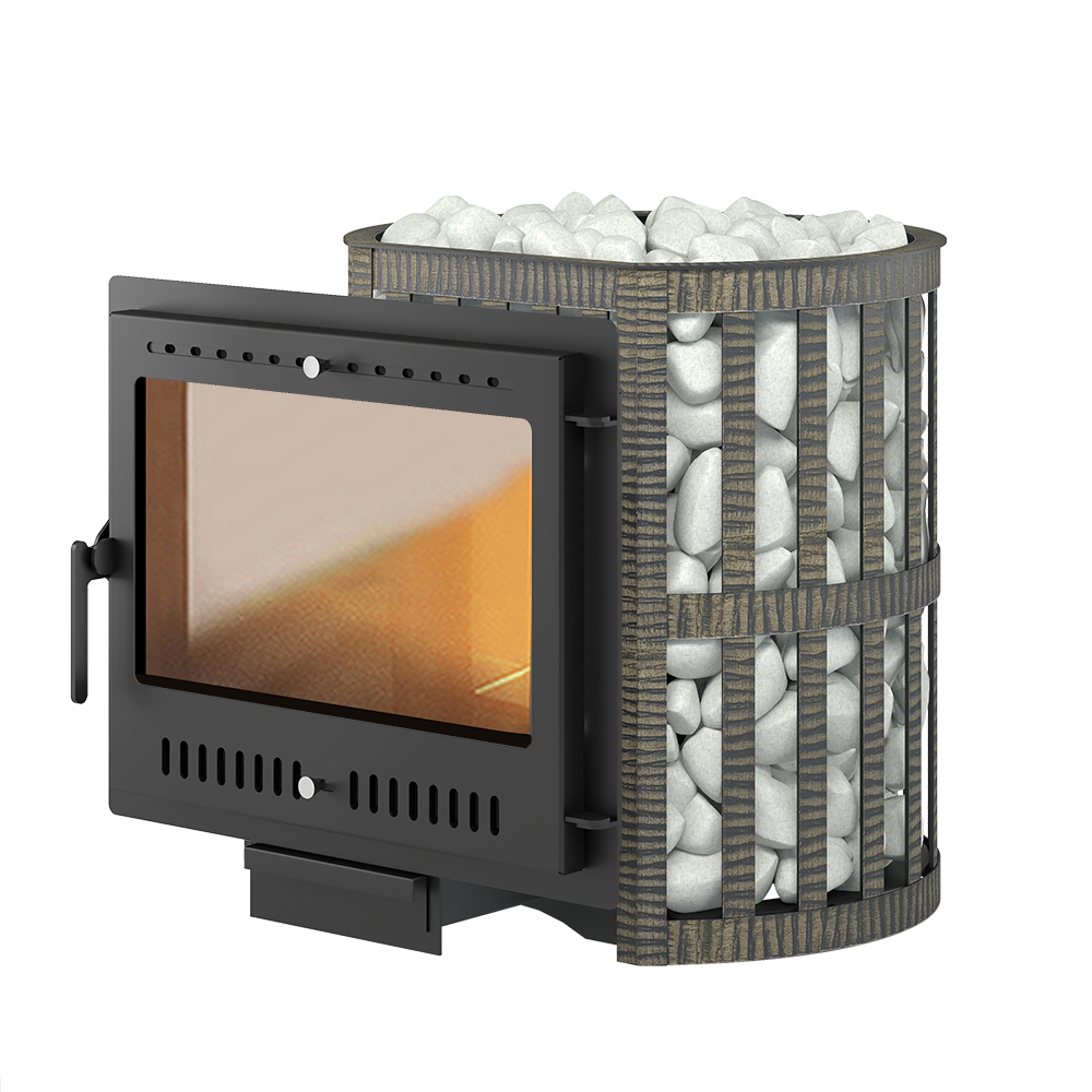 Банная чугунная печь Легенда Ковка 16 Панорама "М" укомплектована металлической герметичной дверцей Везувий Панорама "М".