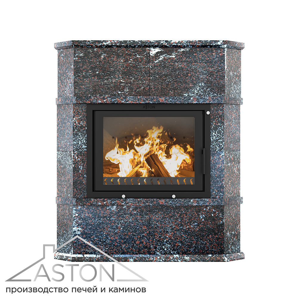Камины облицованы натуральным камнем(на выбор: Пироксенит/Талькохлорит/Амфиболит) толщиной 40мм, который обладает невероятными теплоаккумулирующими свойствами. По своей теплопроводности и теплоёмкости этот камень в два с половиной раза превосходит привычный кирпич. Натуральный камень очень эффективно нагревается и долго держит тепло, постепенно передавая его в помещение