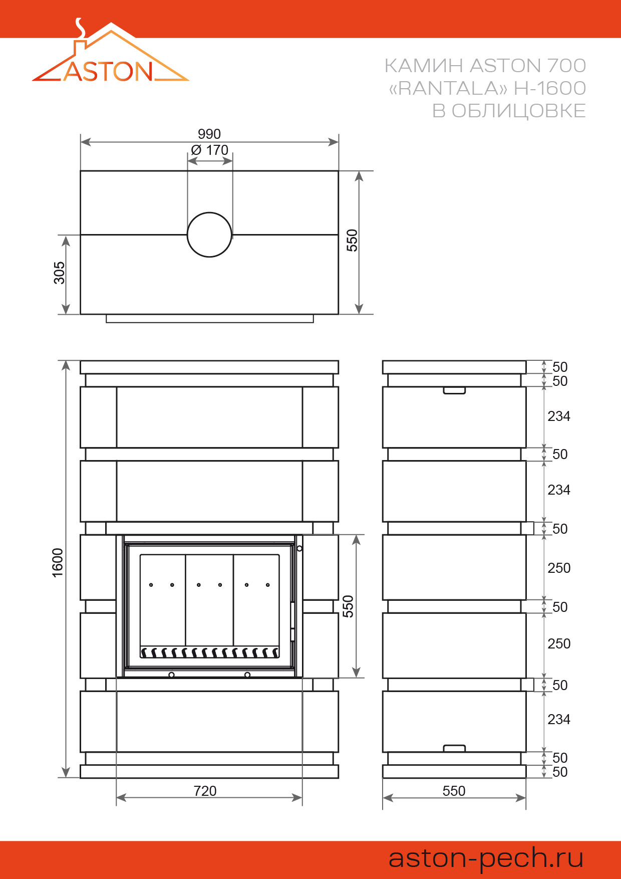 Топка ASTON 700 внутри облицовки размещается на подставке. Топка, подставка и облицовка отлично походят друг к другу и не требуют дополнительной подгонки. Свободное пространство между топкой и облицовкой предназначено для движения нагретого воздуха. Именно за счёт конвекции быстро нагревается пространство, что уже в первые минуты работы топки обеспечивает тепло в помещении.