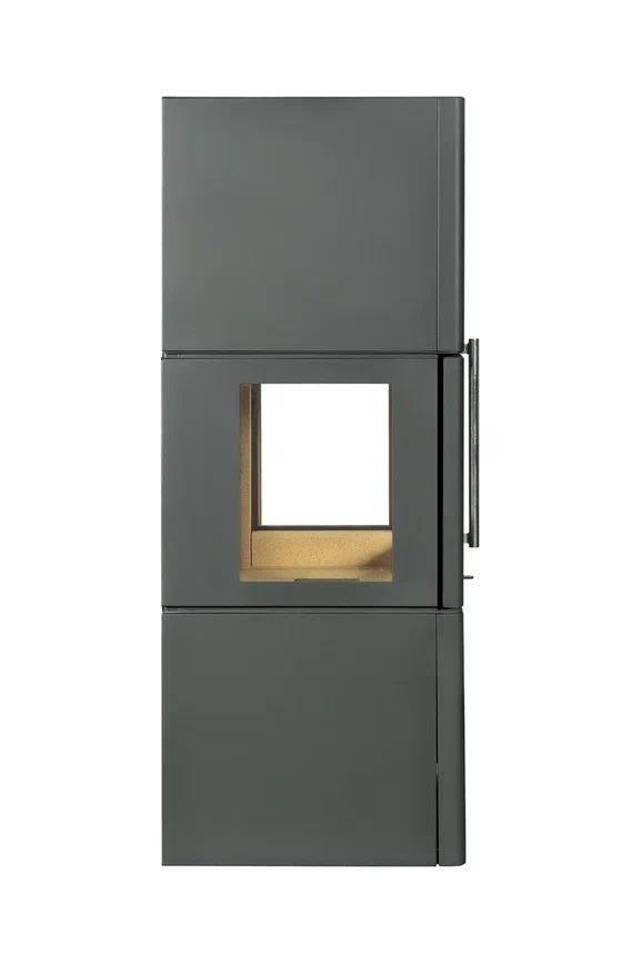 Камин покрыт высококачественной черной теплостойкой краской подчеркивающей его строгие формы.