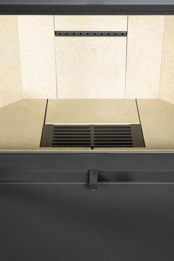 Под печь необходимо предусмотреть негорючее основание. Рекомендуем использовать листы под печь черного цвета.