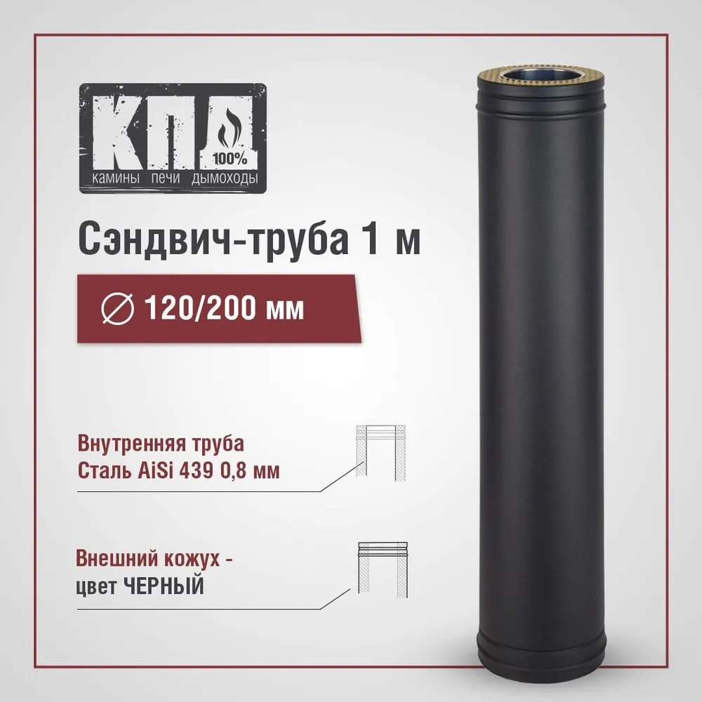 - Дымоход КПД ЧЕРНЫЙ в сборе с узлом прохода кровли.