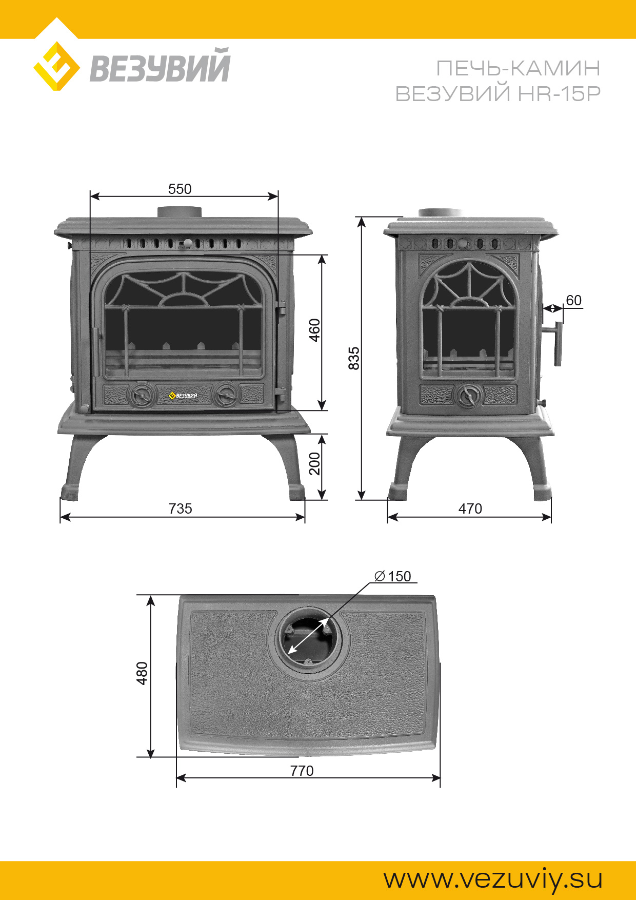 Печь-камин Везувий HR-15P изготовлена из качественного жаростойкого чугуна с толщиной стенок 6-8 мм..
