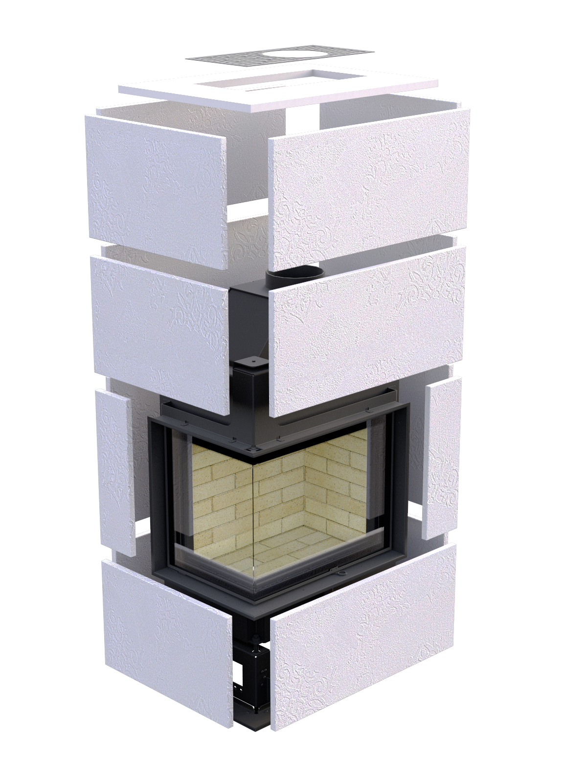 Футеровка — это внутренний корпус топки, который берёт на себя всю термическую нагрузку. Футеровку можно выбрать из 4х вариантов. Широкие стальные пластины для самого современного стиля – строгий и лаконичный дизайн, который подчеркнёт Ваш прагматичный характер и оригинальный вкус. Панели 3D – сбалансированный вариант. Тепло распределяется равномерно, а внушительная масса поддерживает высокотемпературное горение. Шамот - очаг разогревается дольше, температура развивается выше, чем с содержимым из стали. Хорошо подходит, если Вы любите долго топить камин. Темная керамика - накапливает энергию и передаёт мягкое тепло, даже когда огонь совсем погас.